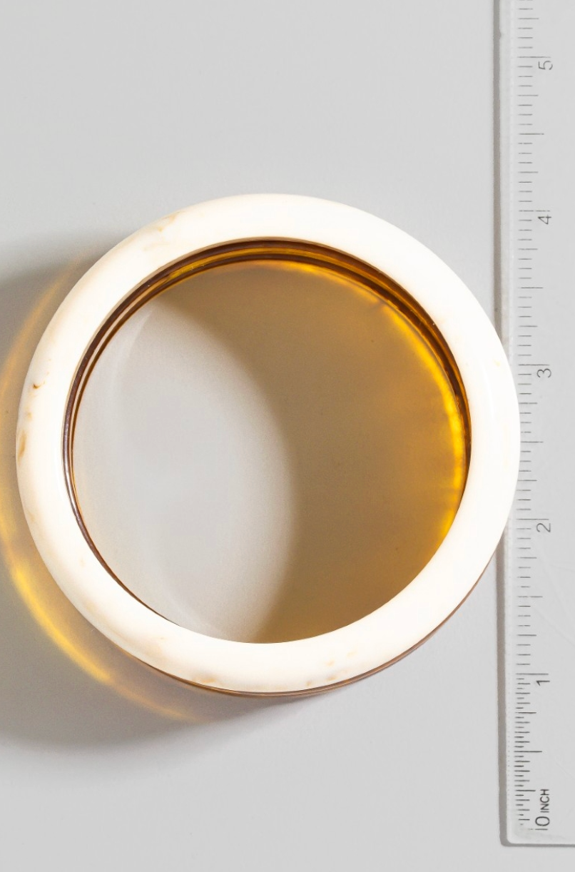 • Marbled amber and ivory tones blend modern chic with vintage charm