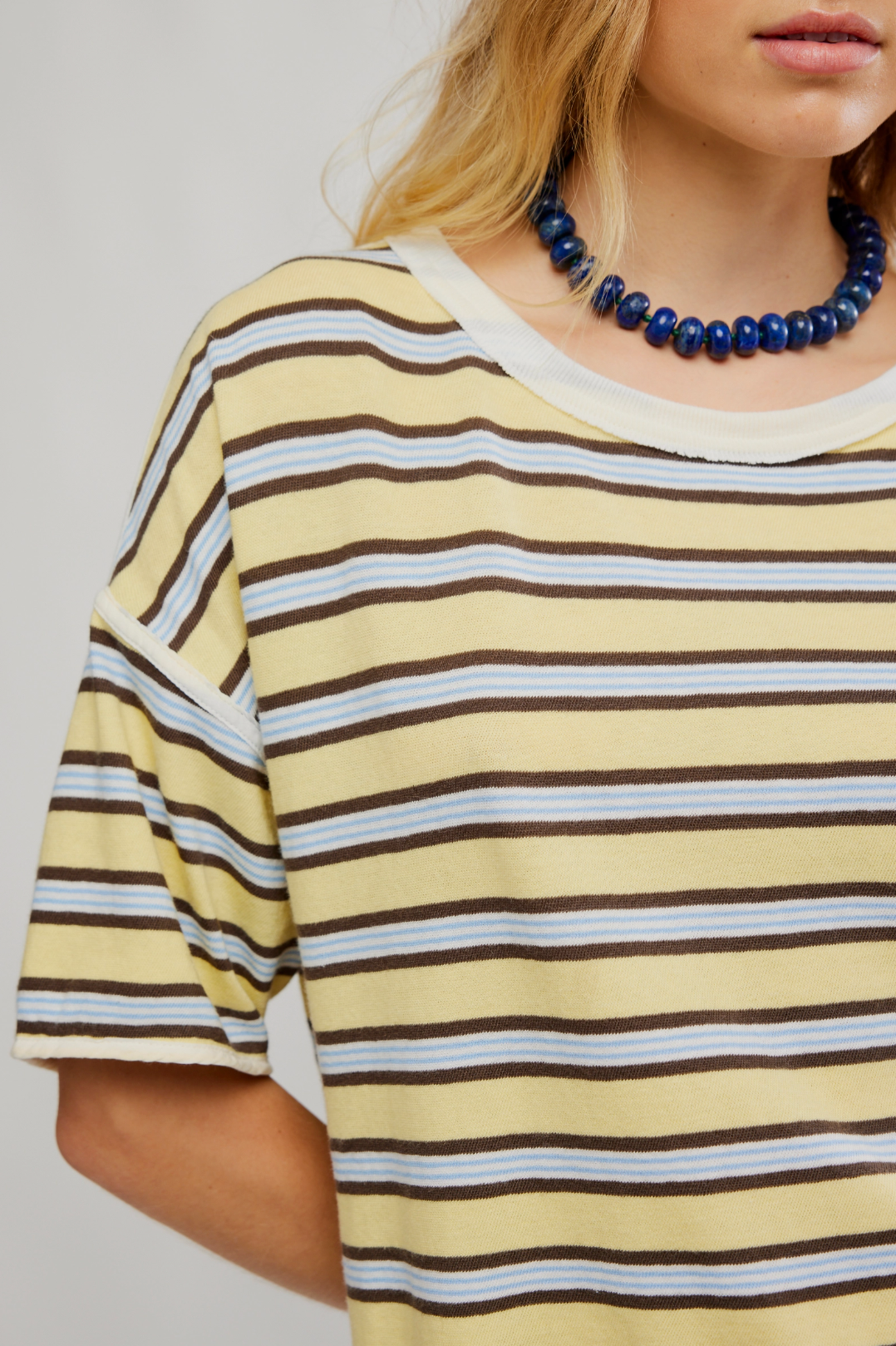 Designed for both comfort and character, this striped rugby tee combines retro charm with effortless everyday wear. The cropped, boxy fit and wide sleeves create a relaxed silhouette, while soft cotton jersey keeps it lightweight and breathable. Perfect for those casual days that still call for style.