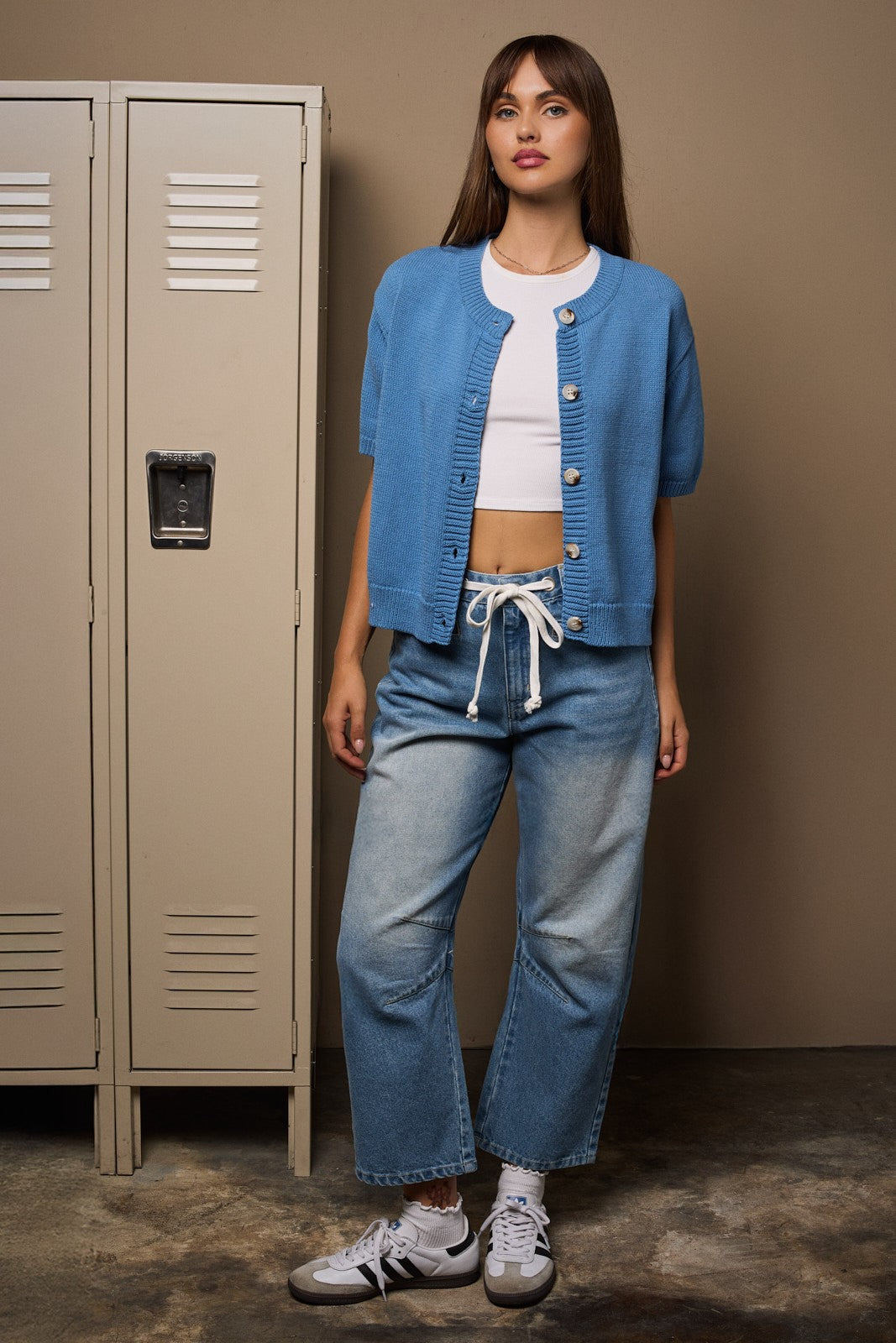 Relaxed cool: Short sleeves give a modern twist to the classic cardigan.