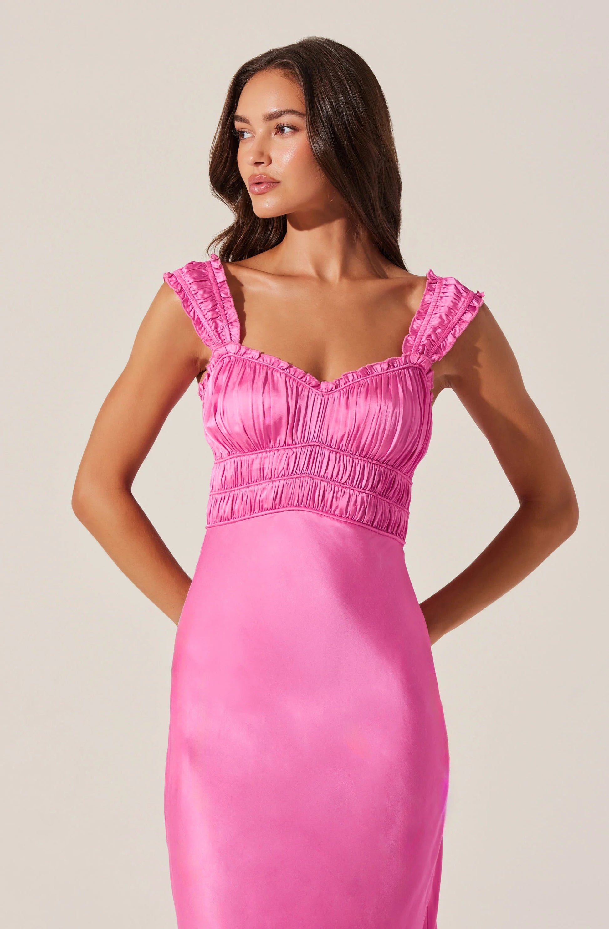 Enola Satin Smocked Midi Dress