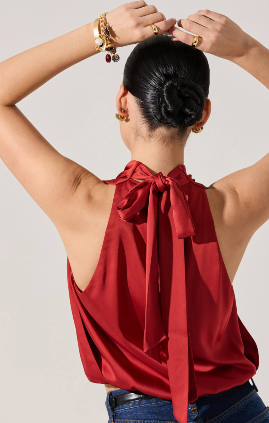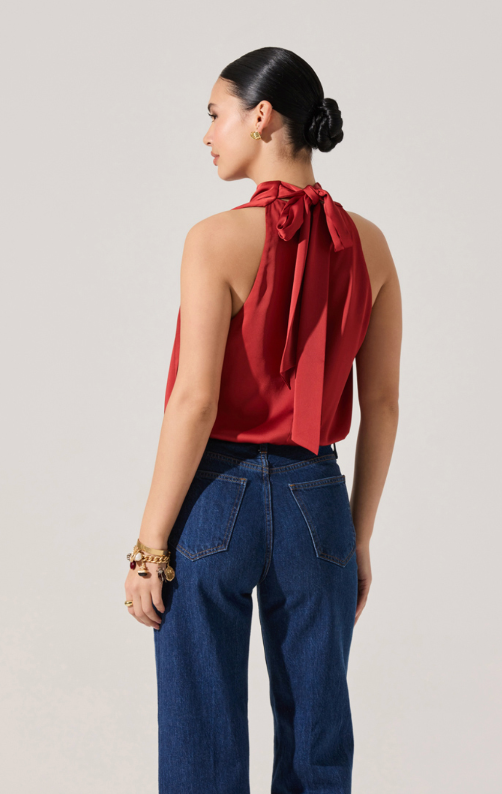 The Joleisa Top brings instant polish to your wardrobe with its elegant high neckline and flirty bow-tie back. Designed in a bubble crop silhouette, this sleeveless piece balances structure and movement for a look that’s both fun and elevated. Perfect with high-waisted denim or tailored bottoms, it’s the ultimate wear-anywhere top that transitions seamlessly from day to night.