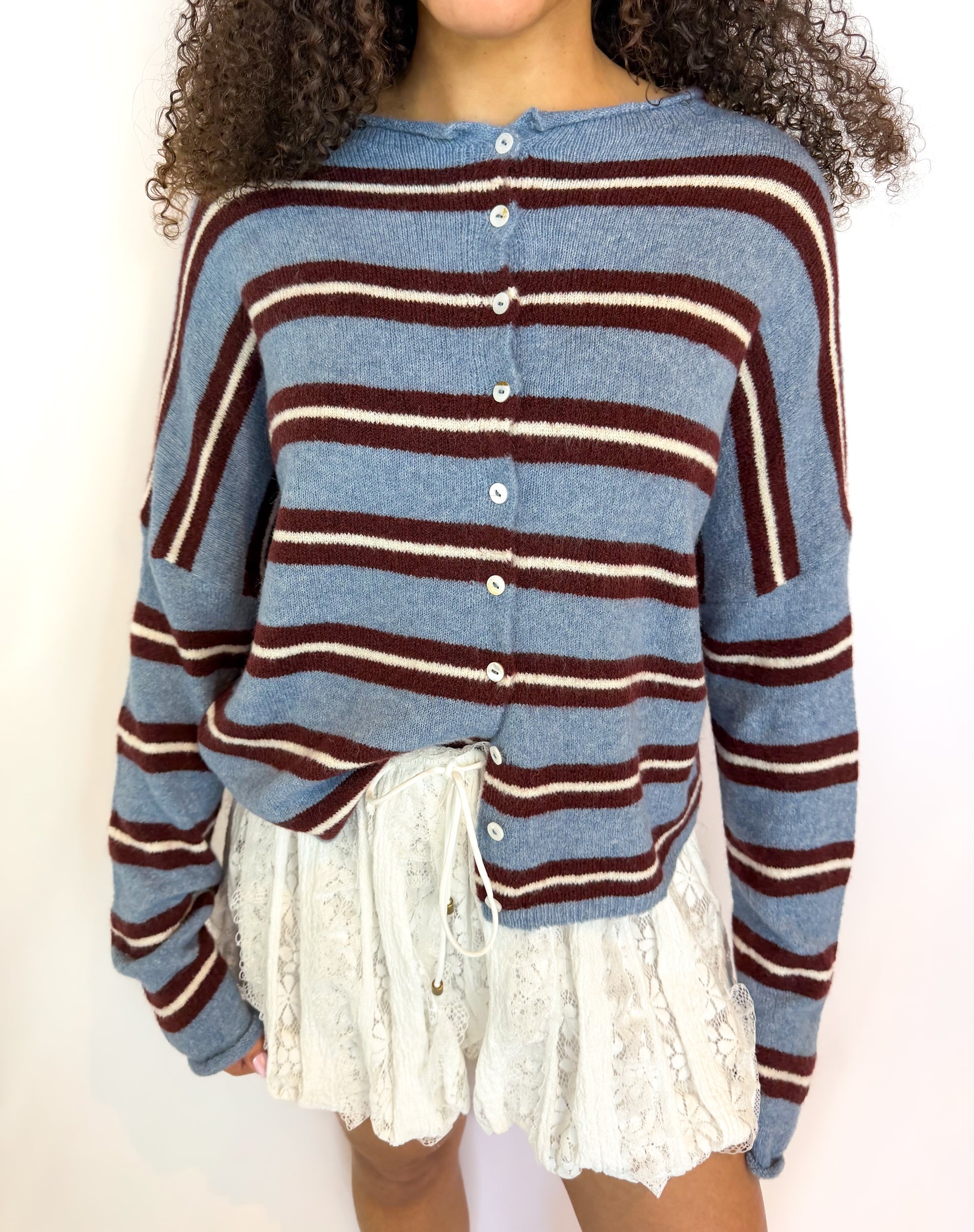 A cozy striped cardigan made for everyday moments—easy, timeless, and endlessly wearable.