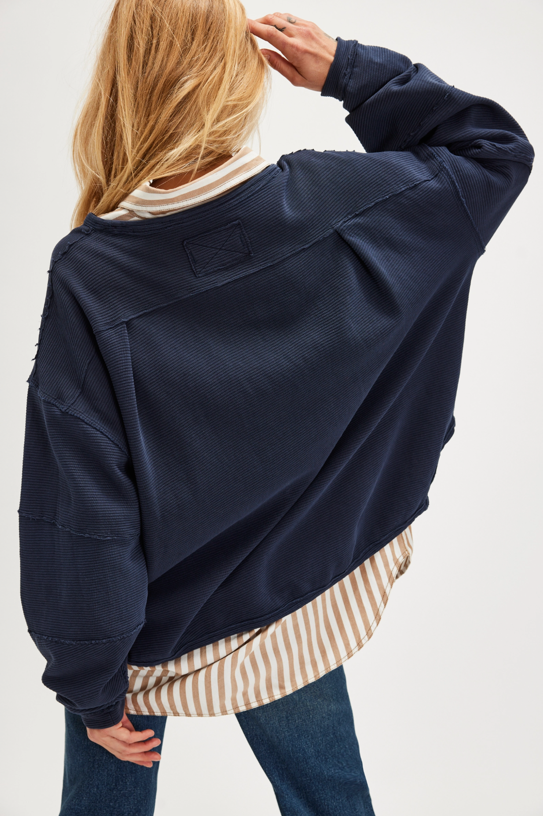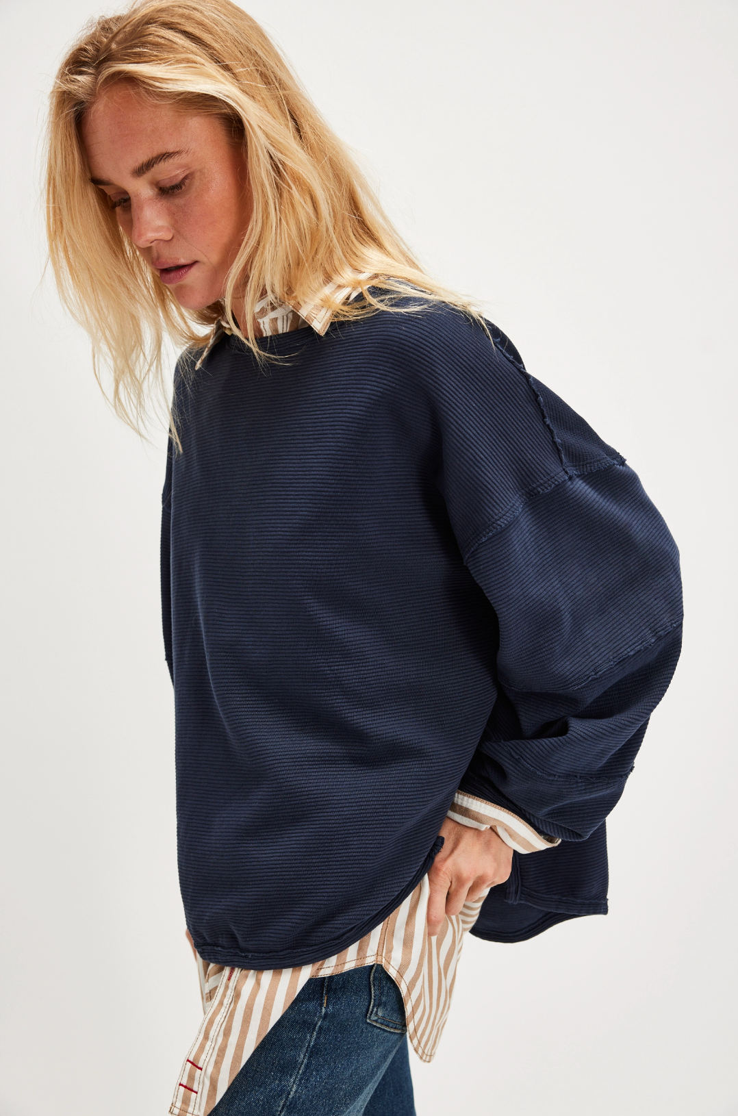• Relaxed, slouchy silhouette with drop-shoulder sleeves
